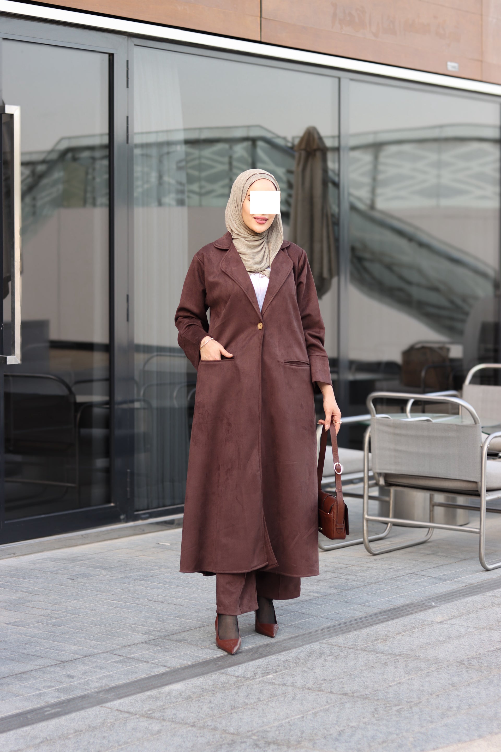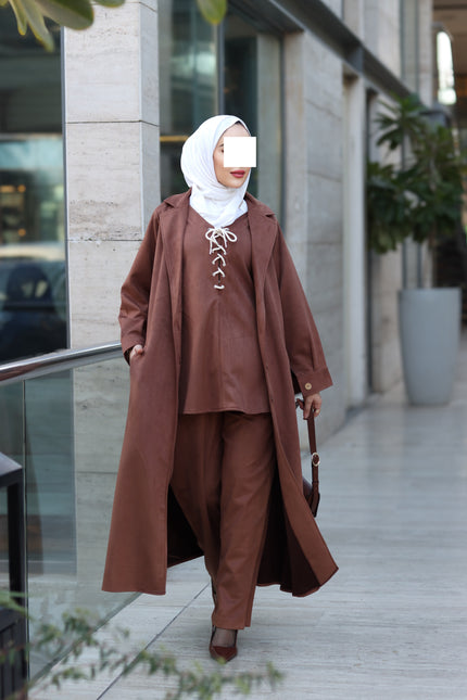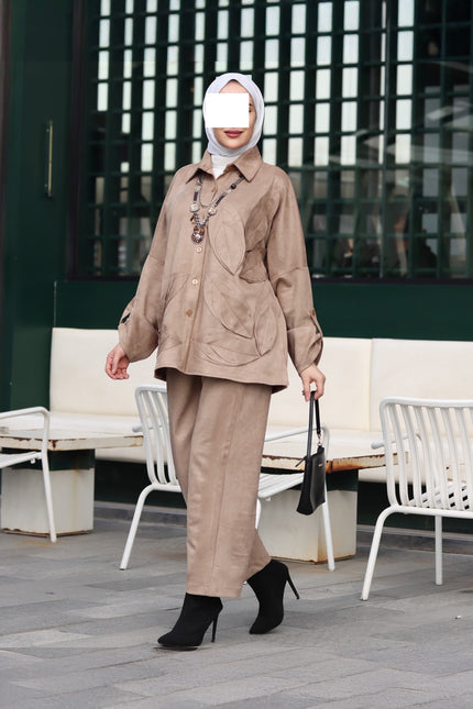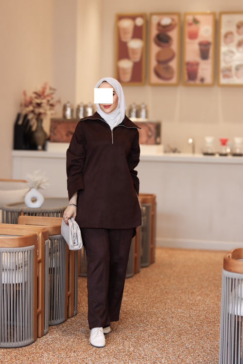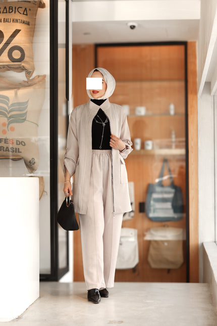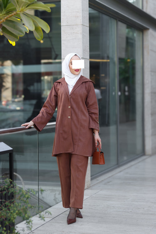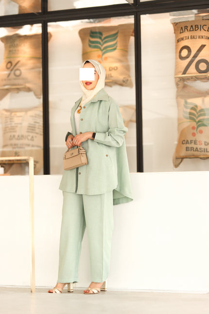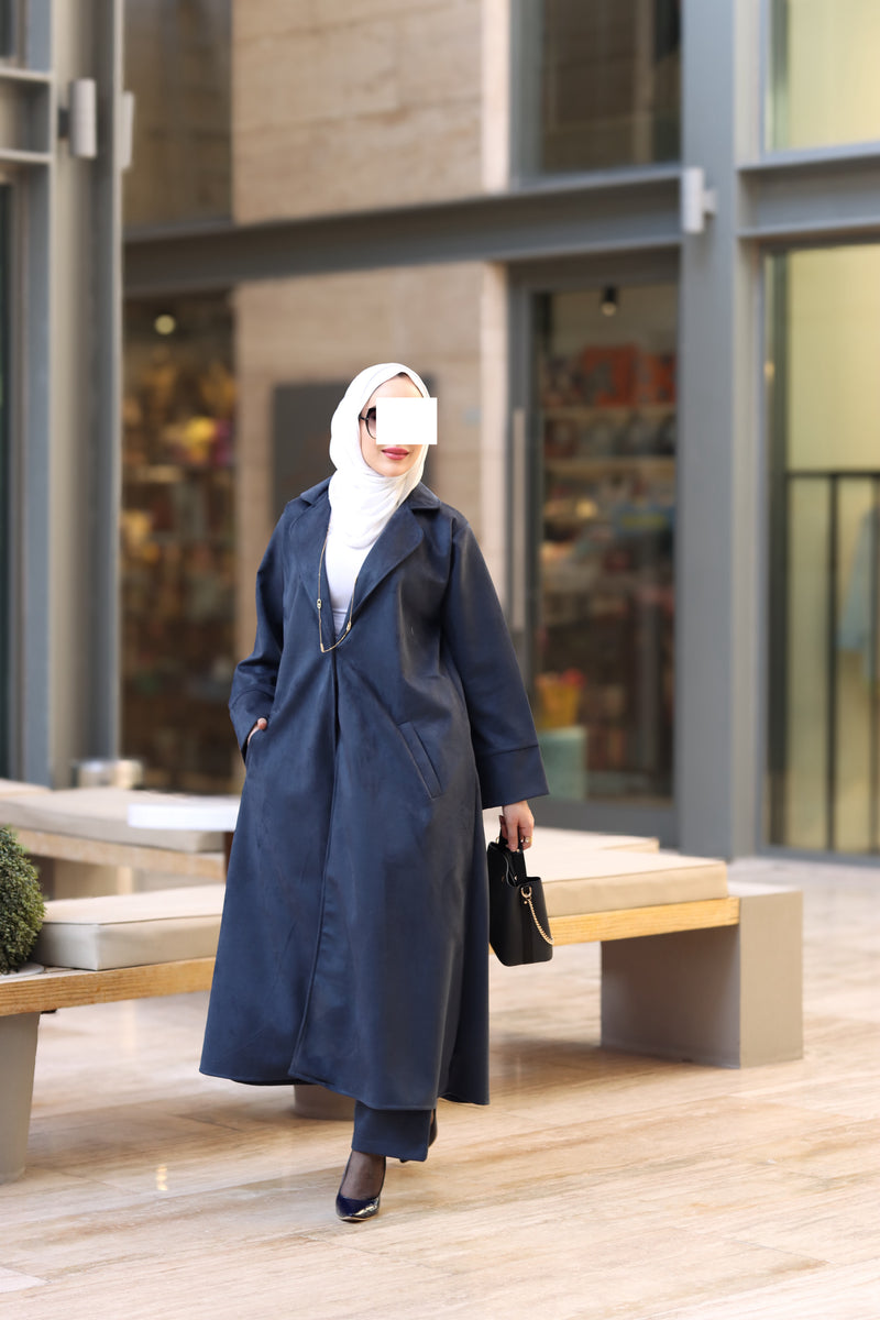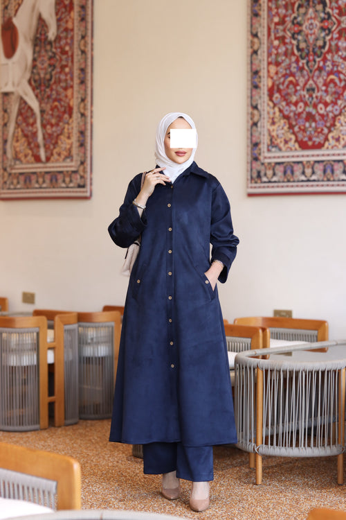 Minimal cut. The angled pockets add a practical touch, while the matching straight pants keep the outfit balanced and comfortable. The navy shade gives it a polished, versatile look perfect for daily wear, work, or simple evening styling.