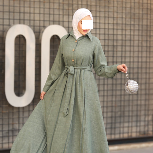 Buttoned Linen Set – Mint